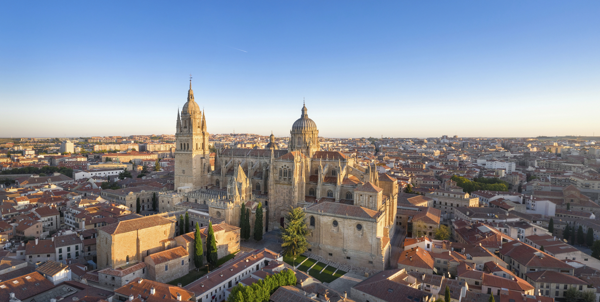 Tous les bâtiments du centre-ville sont recouverts de pierres dorées : Salamanque est unique ! Rejoignez notre visite guidée qui vous mènera de la plus ancienne université d'Espagne à la Plaza Mayor, où se déroulaient autrefois les corridas. Continuez jusqu'à la Maison des coquillages, un bâtiment gothique qui témoigne du mariage entre deux familles très influentes de la ville. Visitez la nouvelle cathédrale gothique du XVIe siècle, qui remplace l'originale, l'ancienne cathédrale du XIIe siècle. Le déjeuner dans un hôtel est accompagné d'un spectacle de flamenco traditionnel donné par l'école de flamenco locale, qui exprime une joie de vivre ardente. Avant que le bus ne vous ramène au bateau à travers des paysages variés, vous aurez encore un peu de temps pour flâner individuellement dans la ville.