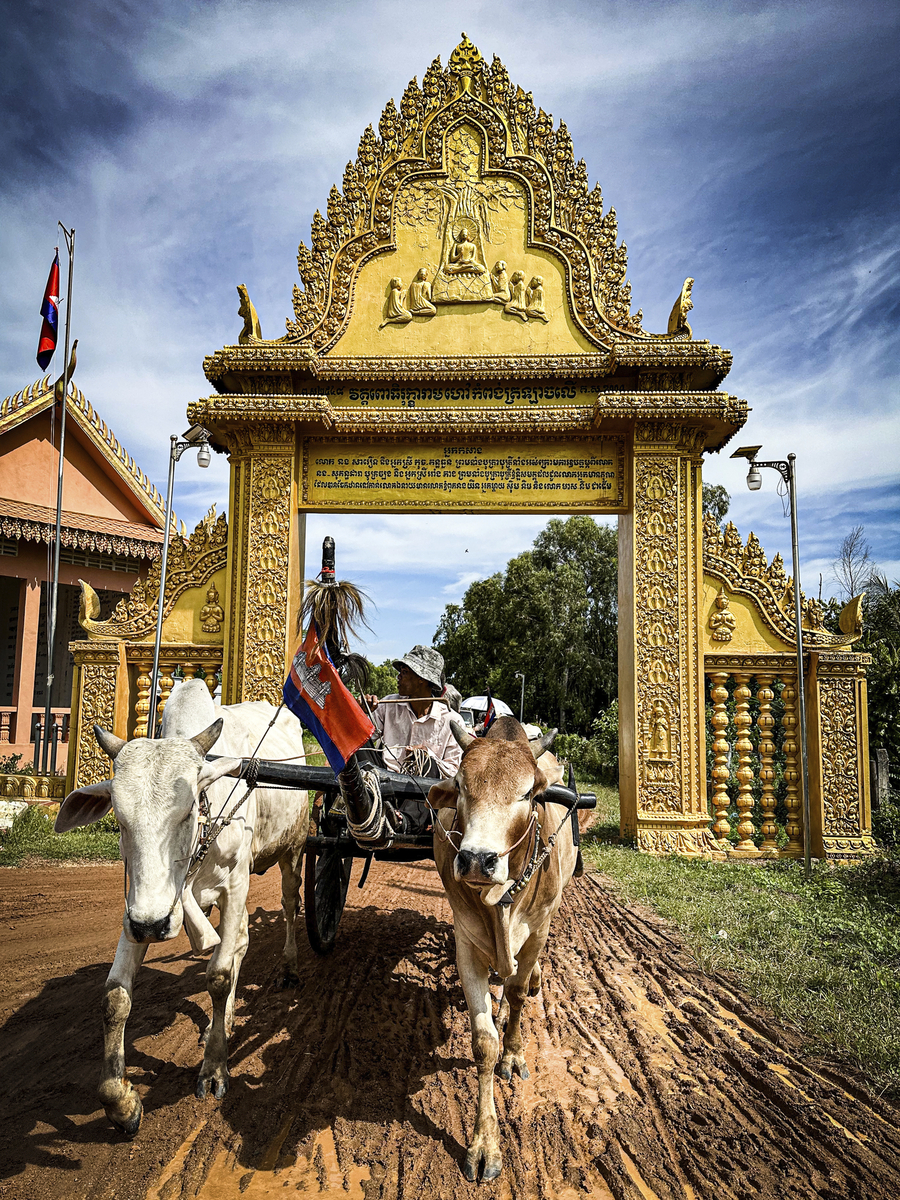 Le matin, le Mekong Discovery poursuit sa route vers Kampong Tralach. Après une matinée tranquille à bord, une expérience particulière vous attend : une balade en charrette à bœufs à travers les rizières pittoresques, le long des maisons traditionnelles et des petits villages. (Nous pouvons également vous réserver un tuk-tuk, veuillez vous adresser à votre accompagnateur).
