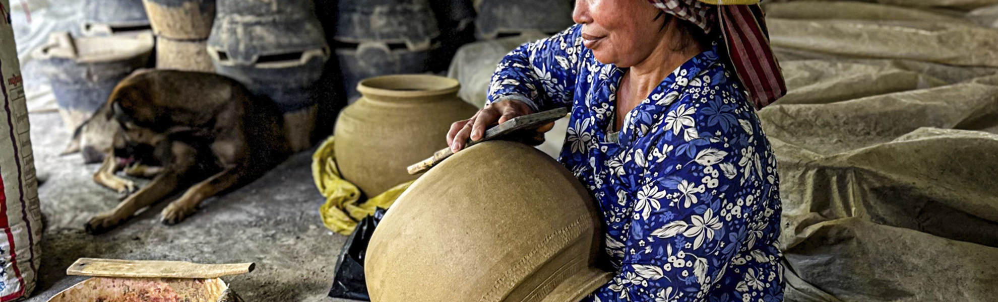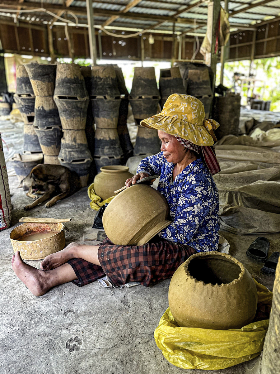 Après un copieux petit-déjeuner, vous profiterez d'une balade en tuk-tuk jusqu'au village de Kampong Chhnang. Au cours d'une promenade dans le village, notre guide vous dévoilera les particularités de la région : la poterie khmère, le marché local et le processus de fabrication du sucre de palme à partir du palmier cambodgien « Skor T'not ».