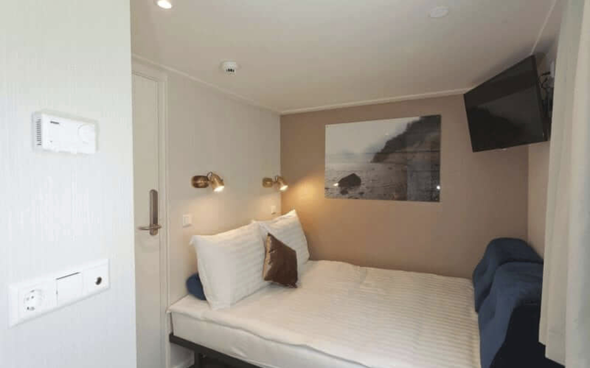 Auf dem Hauptdeck befinden sich 33 2-Bettkabinen mit Fenstern, die aus Sicherheitsgründen nicht geöffnet werden können. Die 12 2-Bettkabinen auf dem Oberdeck verfügen über einen französischen Balkon, ebenso die beiden Einzelkabinen. Alle 2-Bettkabinen haben eine Grösse von ca. 11 m2 und sind mit zwei getrennten Einzelbetten ausgestattet. Eines der beiden kann tagsüber in ein Sofa verwandelt werden. Sämtliche 47 Kabinen der MS Arkona verfügen über Dusche/WC, individuell regulierbare Klimaanlage, TV, Haarföhn und einen kleinen Safe.