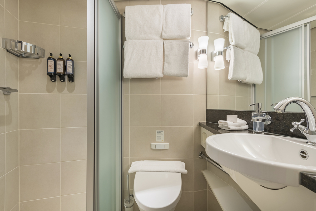 Alle Kabinen sind mit Dusche/WC, Föhn, Flachbildschirm-TV, Radio, Kühlschrank, Safe, Telefon und Klimaanlage ausgestattet.