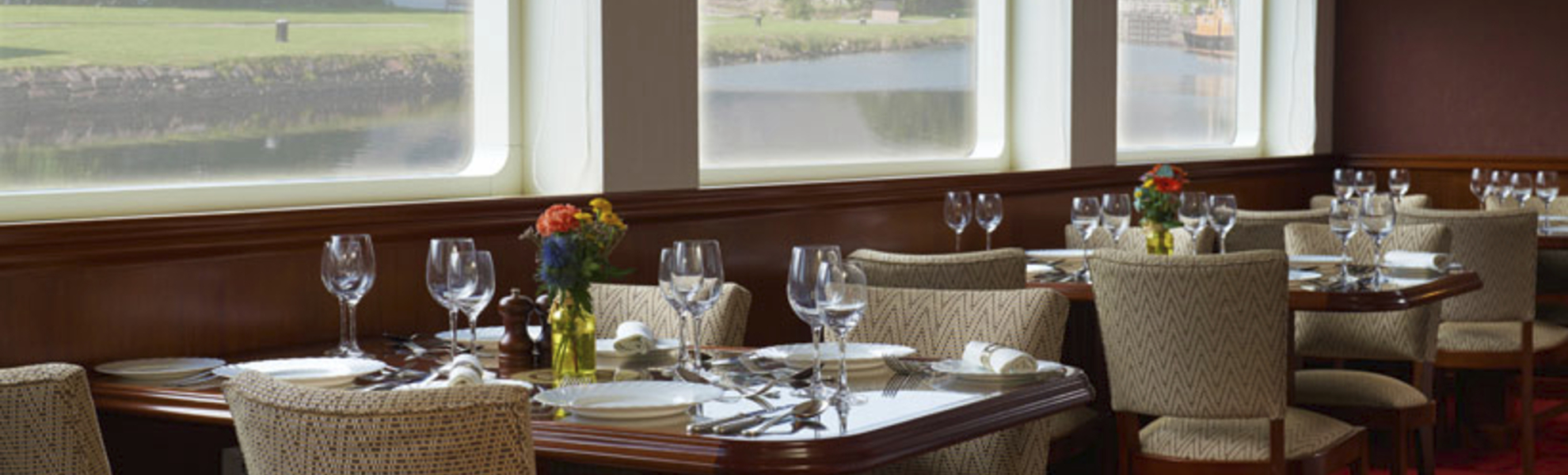 Die Mahlzeiten werden im eleganten Restaurant mit grossen Panoramafenstern serviert. Die Hauptmahlzeiten werden aus frisch ans Schiff angelieferten lokalen Produkten zubereitet. Durch das grosszügige All-Inclusive-Konzept lässt auch die Begleitung durch Weine und Drinks keine Wünsche offen. Panorama-Lounge und Bar bieten einen gemütlichen Komfort in angenehmer Umgebung. Gratis WLAN nach Verfügbarkeit. Nichtraucherschiff (Rauchen im gekennzeichneten Aussenbereich erlaubt).