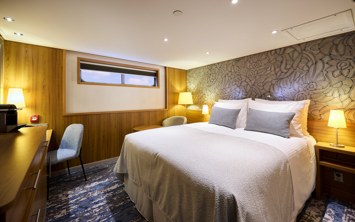 Alle Kabinen verfügen über eine individuell regulierbare Klimaanlage, Flachbild-TV, Telefon, Safe, Föhn und Dusche oder Badewanne/WC. In den Kabinen gibt es eine Sitzgelegenheit, bestehend aus einem Tisch und Stuhl.